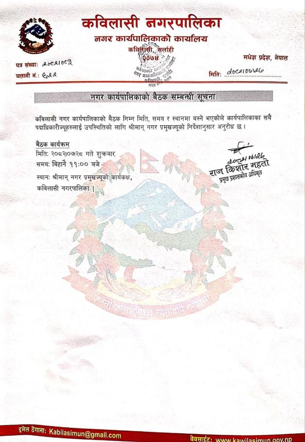 नगर कार्यपालिकाको बैठक सम्बन्धी सूचना |