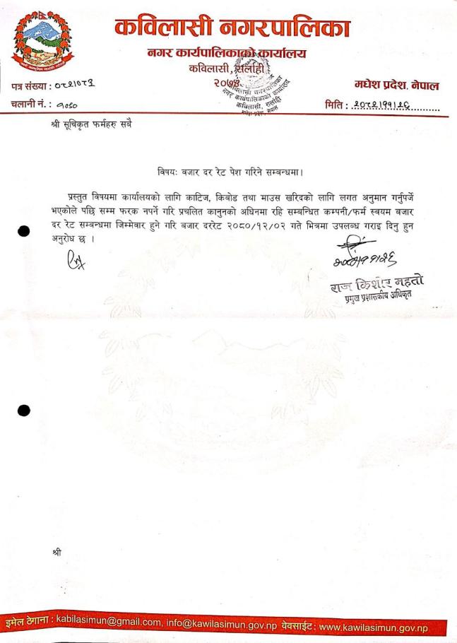 बजार दर रेट पेश गरिने सम्बन्धी सूचना