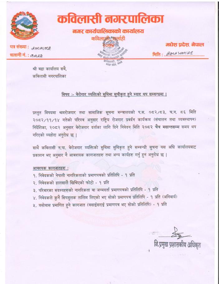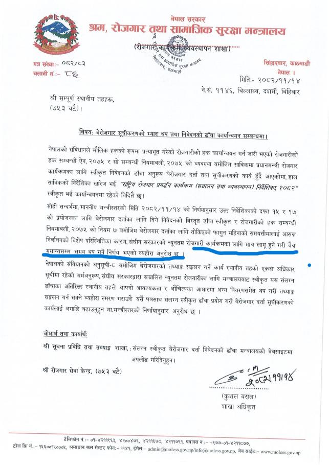 » बेरोजगार सूचीकरणको म्याद थप सम्बन्धी जानकारी |