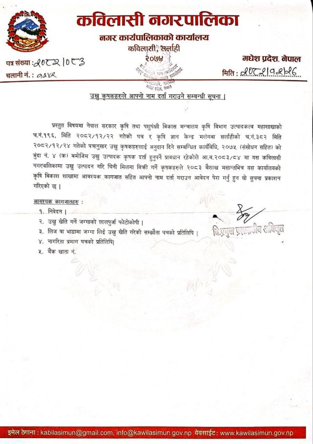 उखु कृषकहरुले आफनो नाम दर्ता गराउने सम्बन्धी सूचना |