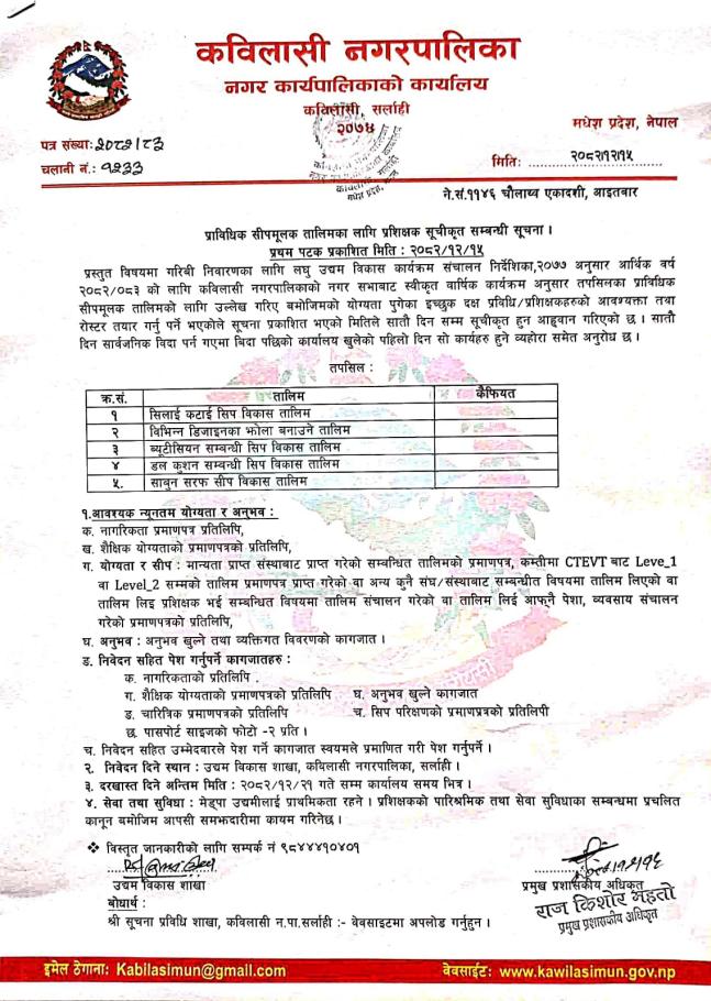 » प्राविधिक सीपमूलक तालिमका लागि प्रशिक्षक सूचिकृत सम्बन्धी सूचना |