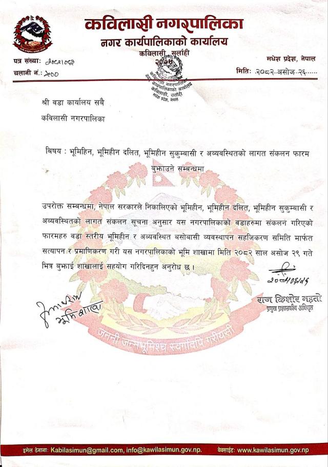 » भूमिहीन, भूमिहीन दलित, भूमिहीन सुकुम्बासी र अव्यवस्थितको लागत संकलन फारम बुझाउने सम्बन्धी सूचना |