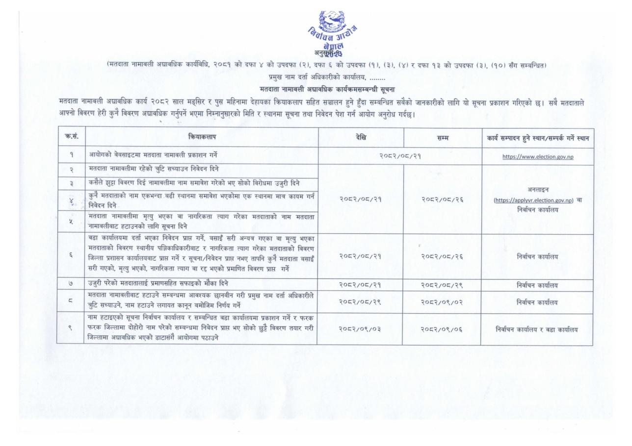» मतदाता नामावली अद्यावधिक (दाबी विरोध) कार्यक्रम, २०८२ सम्बन्धी जिल्ला निर्वाचन कार्यालय सर्लाहीको सूचना ।।