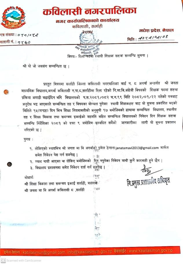रिक्त पदमा स्थायी शिक्षक सरुवा सम्बन्धी सूचना |