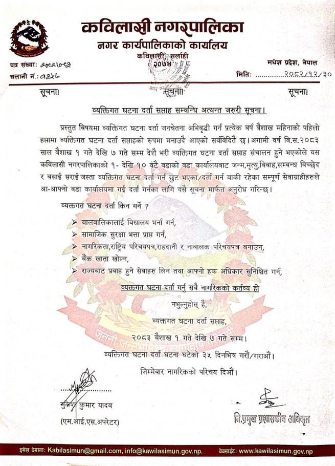 » व्यक्तिगत घटना दर्ता सप्ताह सम्बन्धी जरुरी सूचना ।
