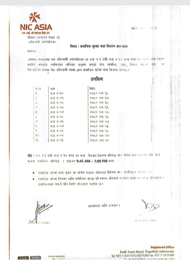 सामाजिक सुरक्षा भत्ता वितरण सम्बन्धमा |