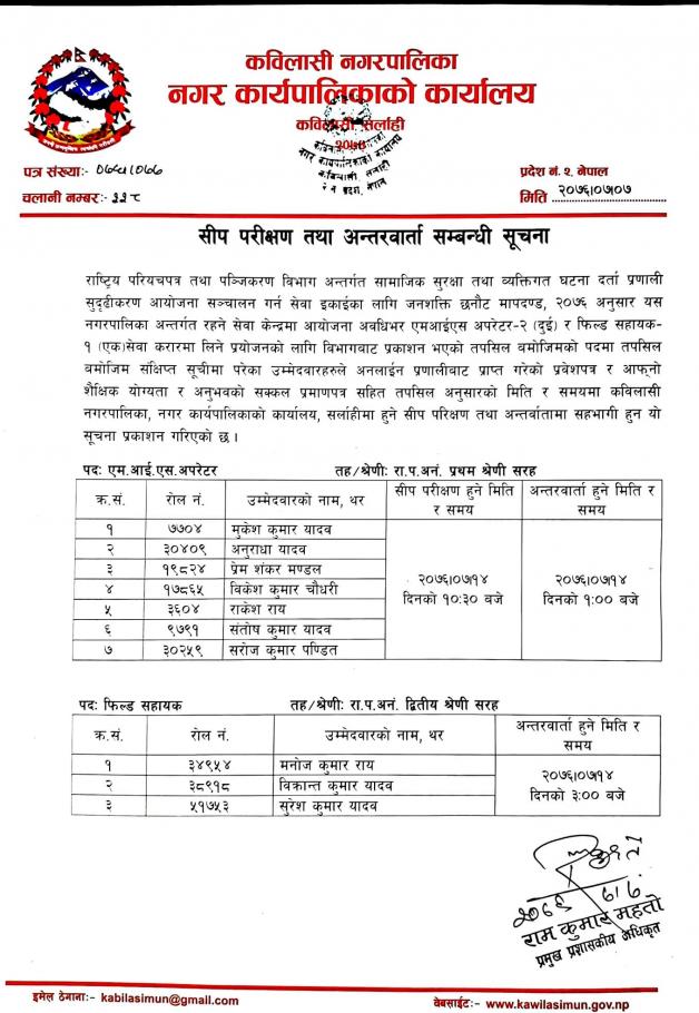 सीप परिक्षण तथा अन्तरबार्ता सम्बन्धी सूचना !!!
